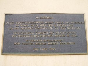 of the resistance fighter Robert Moser, Innsbruck. He was tortured to death by the Gestapo in this building.