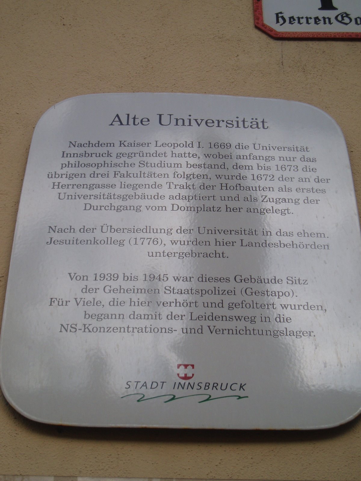 After Emperor Leopold I founded the University of Innsbruck in 1669, which at first consisted only of a college of philosophy until three other faculties were added in 1673, the court buildings on the Herrengasse were converted into the first university facilities , along with a passage for access to to the Cathedral square.