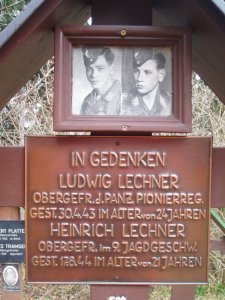 I have visited the Tummelplatz often; it’s just along one of my favorite hiking paths to the lake at Lans, and an interesting place to see. Each marker is individually designed, and often with a photograph of the fallen attached to it, with a few words: his name, age, and where he fell. As is the case with those missing in action, often this place was the only kind of “grave” the family had. I have included a few photos here, so that you can take a look at these “Nazis” yourself. Most of them were no more than boys, and none of them have the stiff, menacingly serious look that American military portraits have these days. They were young, and had absolutely no choice in the matter of joining up (refusal led in many instances to arrest, imprisonment, trial, execution.) Many of the markers speak of a “heroe’s death”.