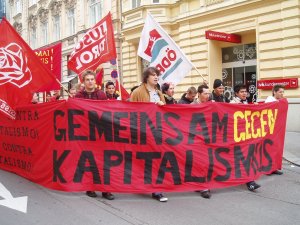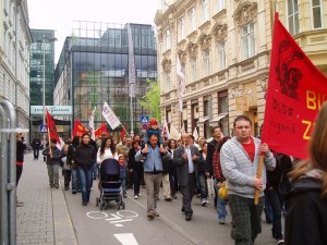 I can’t imagine anything like this in the States. Even if the marchers were Grandmothers For Peace, the mere presence of police would, I feel, add a level of unneeded tension to the event. Not that Austrian police are angels, far from it (as we learned from the Marcus Omafuma case) but perhaps the lack of rampant violent crime keeps their stress levels lower. Aggression and fear, which seem to reflect and feed on each other, were not visibly present today.