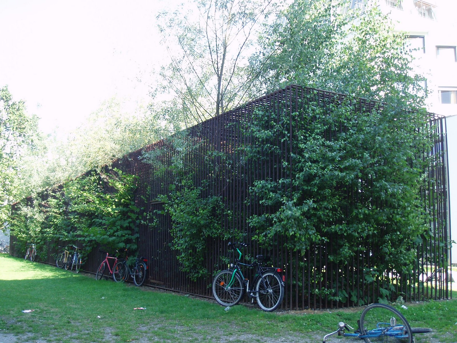Behind my workplace is a complex of buildings referred to as SOWI (“so-vee”), a contraction for the University of Social Sciences. On one of its lawns stands a large, apartment-sized iron cage, containing a small, dense forest and doing double-duty as a bicycle stand, and bearing the unglamourous name “Garden for the New SOWI Building.”
