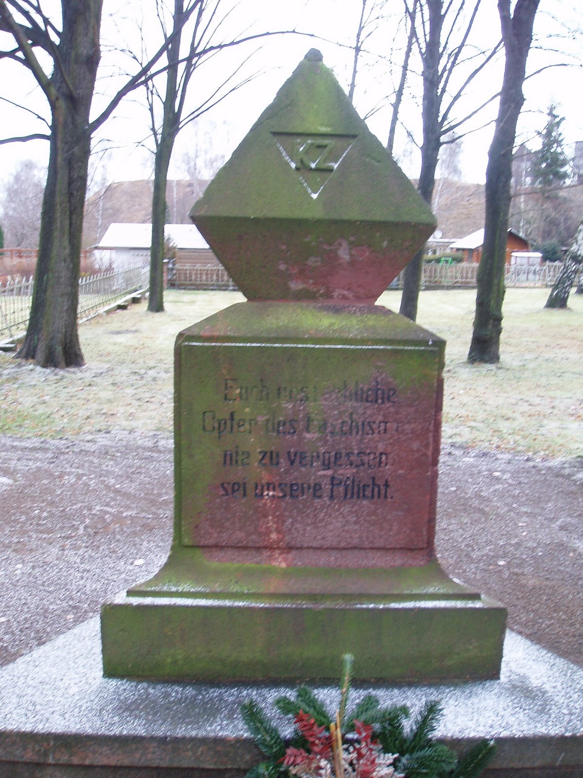 Not far from it we found a smaller monument in memory of concentration camp victims. The letters KZ in a triangle at the top is the short form for Konzentrationslager. The text reads, Euch unsterbliche Opfer des Faschismus nie zu vergessen sei unsere Pflicht (It is our duty never to forget you, the immortal victims of fascism.)