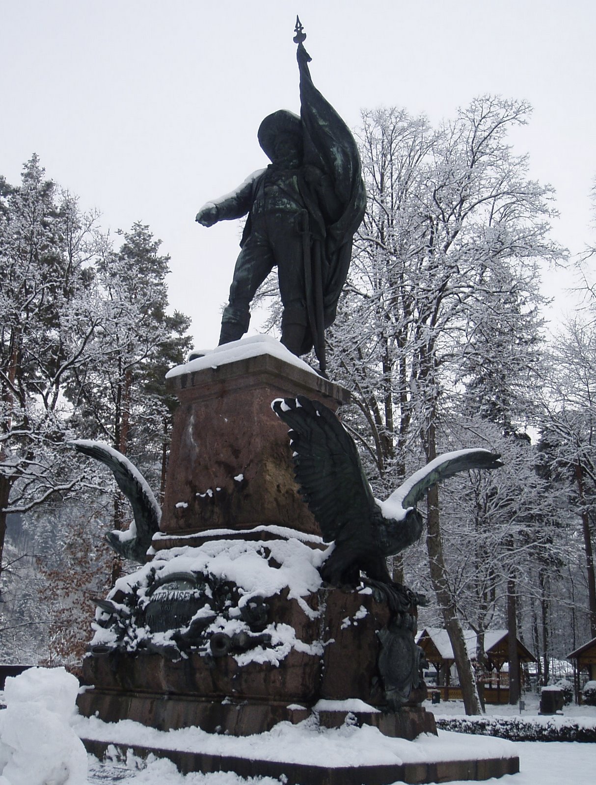 The site of Hofer’s most famous adventure, the Battle of Bergisel, is now home to a museum and a park with Monarchy-era monuments and statues, including the one below. The plaque at the base reads Für Gott, Kaiser und Vaterland. The Battle of Bergisel took place in 1809, and it is this year which is most closely identified with Hofer. 2009 being the 200th anniversary, there is much going on as far as cultural events and awareness in Innsbruck.