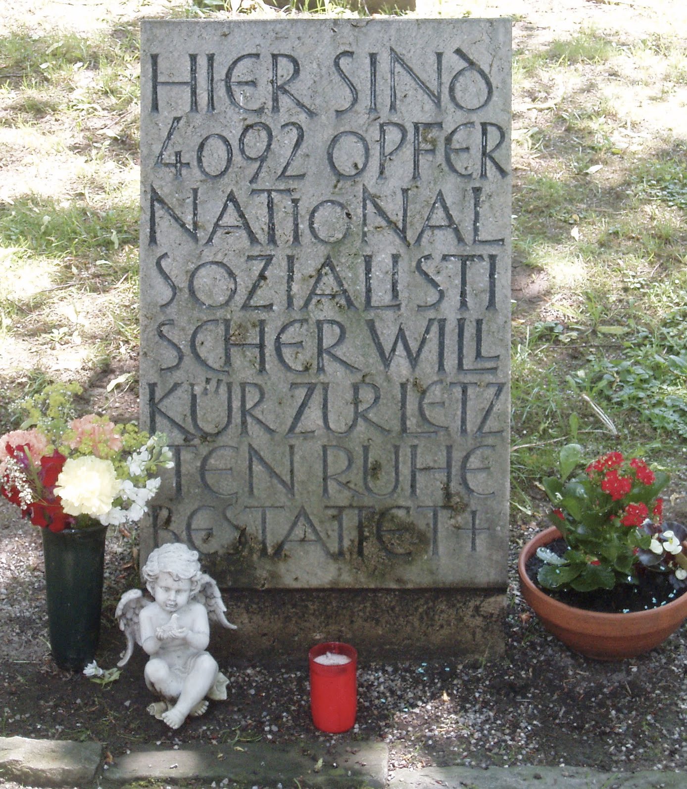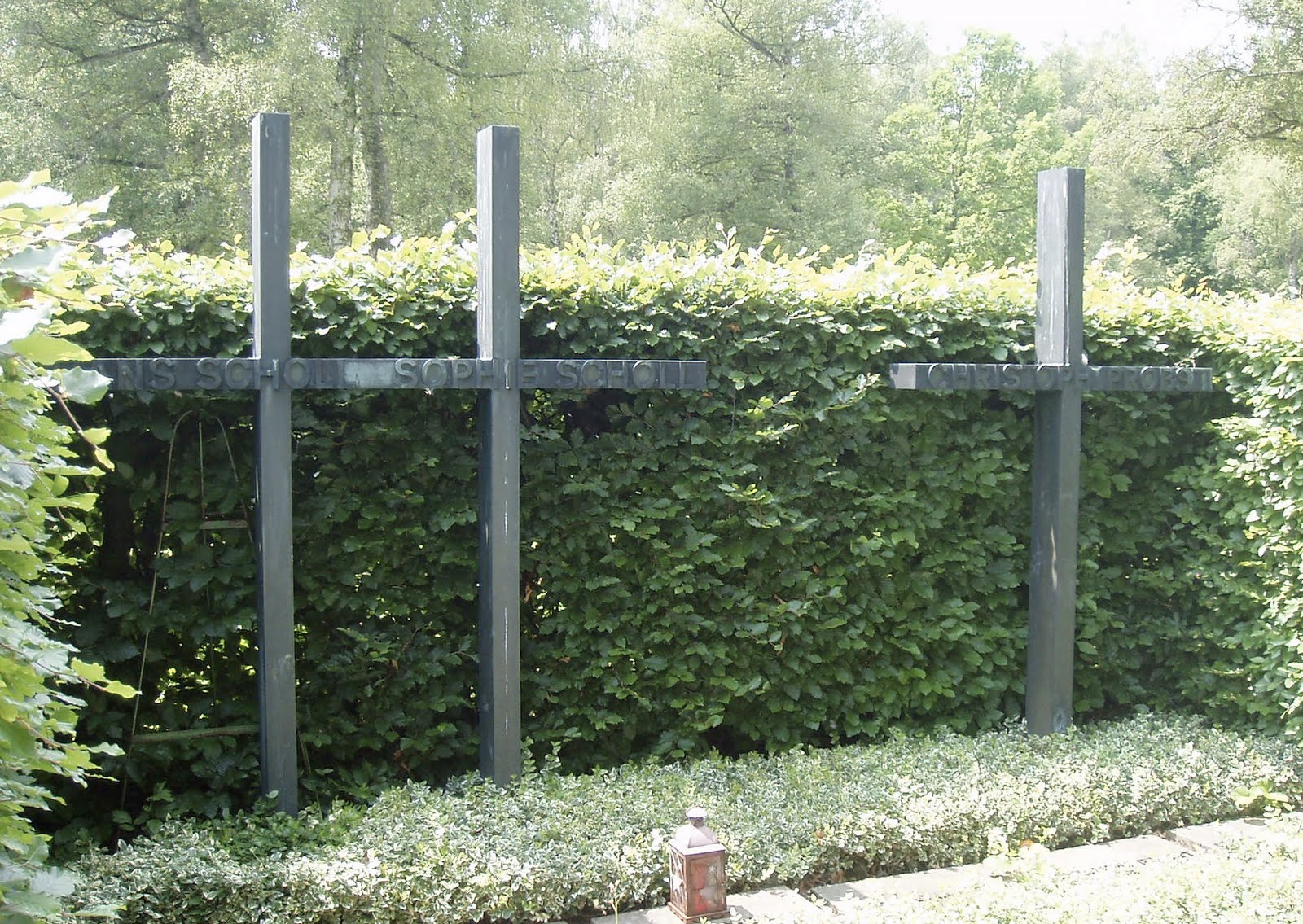Right beyond those trees in the background, unseen, is the Stadelheim Prison where the Scholls and Christoph Probst were executed by guillotine. As unfeeling as it may sound, they were lucky. The July 20th conspirators, (the non-military individuals, who didn’t get the honor of a bullet to the head), suffered gruesome, drawn-out, painful deaths by hanging with piano wire, after having been given heart boosting meds to keep them going as long as possible. And, of course, being gassed was much worse as well.
