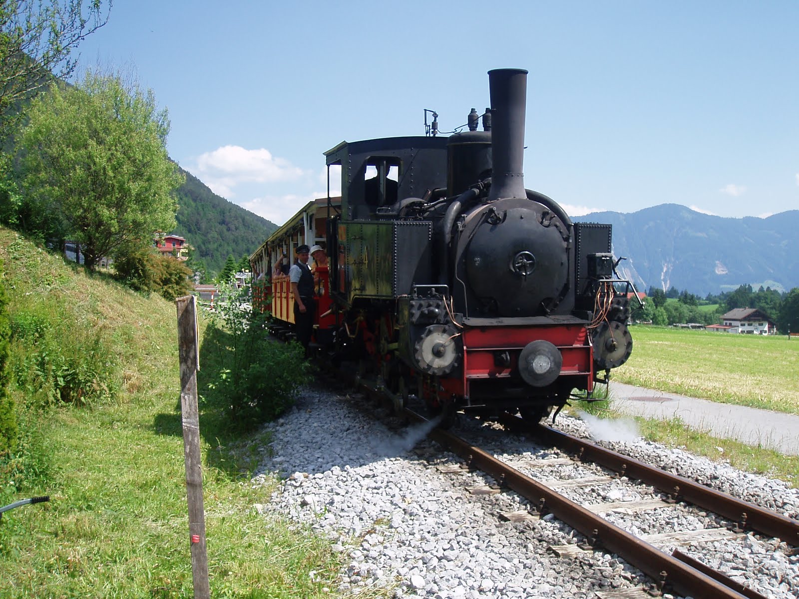 The Achenseebahn, a steep cog rail line which runs from Jenbach to the southernmost boat landing on the lake, was built in 1889 and still uses steam trains, unlike the chic and modern electrified Hungerburgbahn. I’ve ridden it once, it’s kind of fun, but it costs an arm and a leg (€22 one way!) I walked both ways (a good hour each way on the mountain biker’s forest road Via Bavarica Tyrolensis — don’t hog the road, give the bikers room to get past you, it’s their trail.)