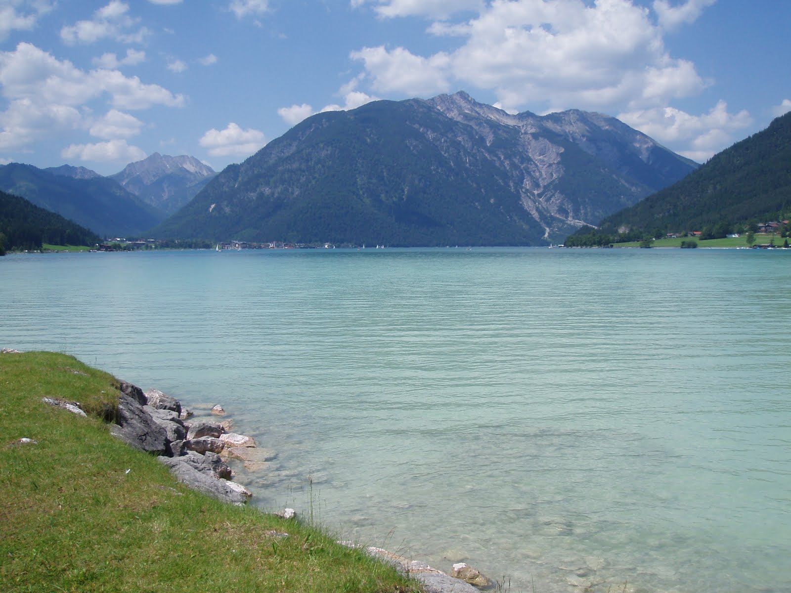 A day trip to the Achensee, a gorgeous lake in Tirol. It’s long and deep (133 meters) but the southern end is shallow and pale, a milky blue-green from the minerals (I think) in the sediment. The water is very clean, but milky to the point where you can’t see your feet when you stand knee-deep in it.