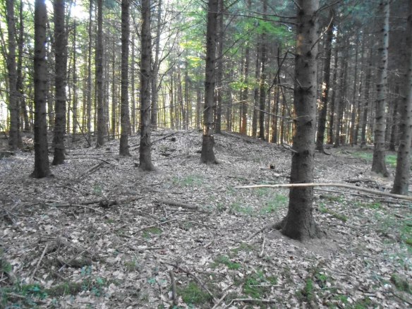 I think this is a mound. The Beau was not entirely convinced. No signs, no path, just strange little hills covered with trees and moss, and a hell of a lot of biting insects (I was wearing shorts — “typisch amerikanisch”, said the Beau — a mistake I won’t make again.)