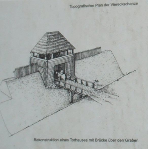 Holzhausen 1 has an entrance gate, or at least a higher break in the wall where a gate would have been built. A nearby sign suggests how one would have looked.