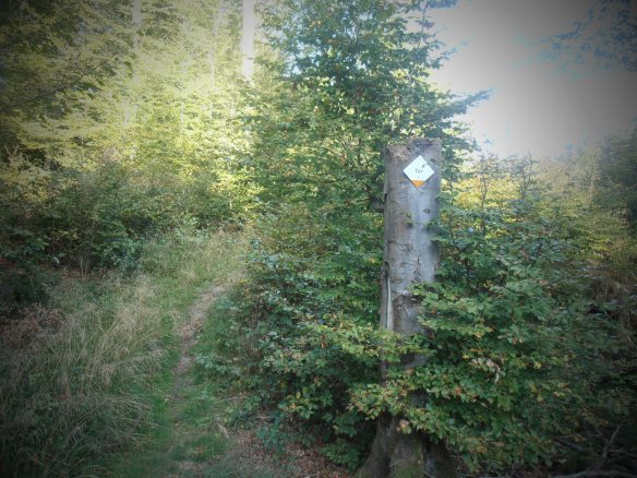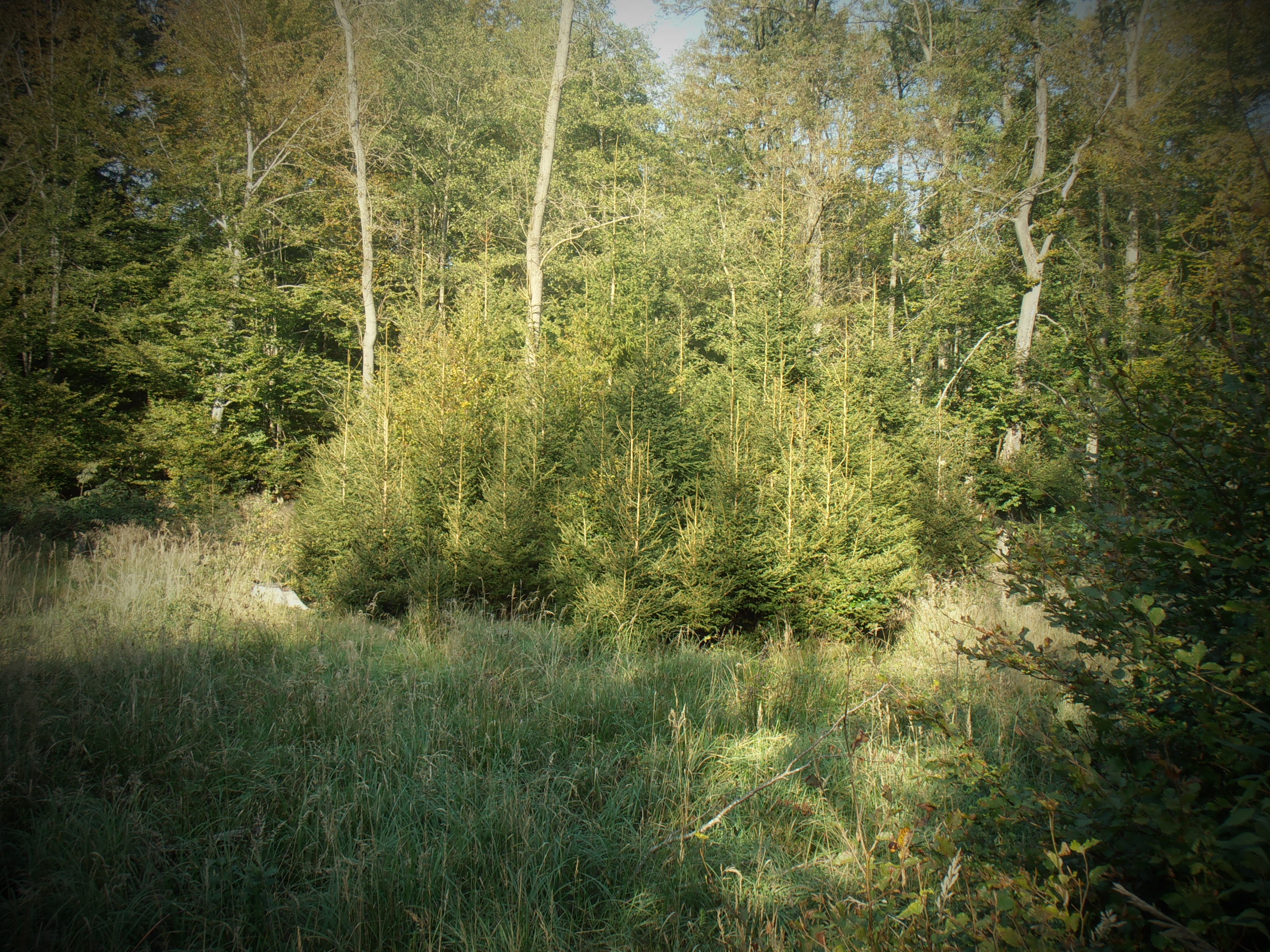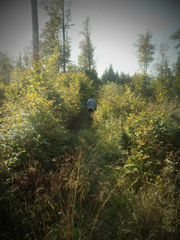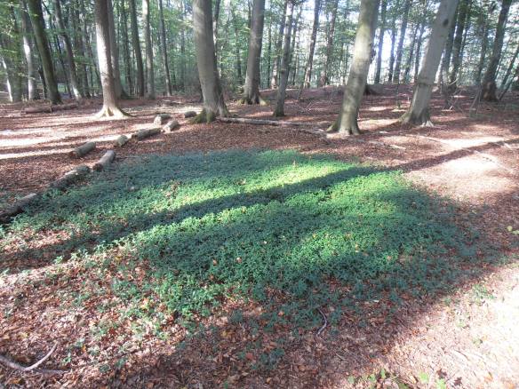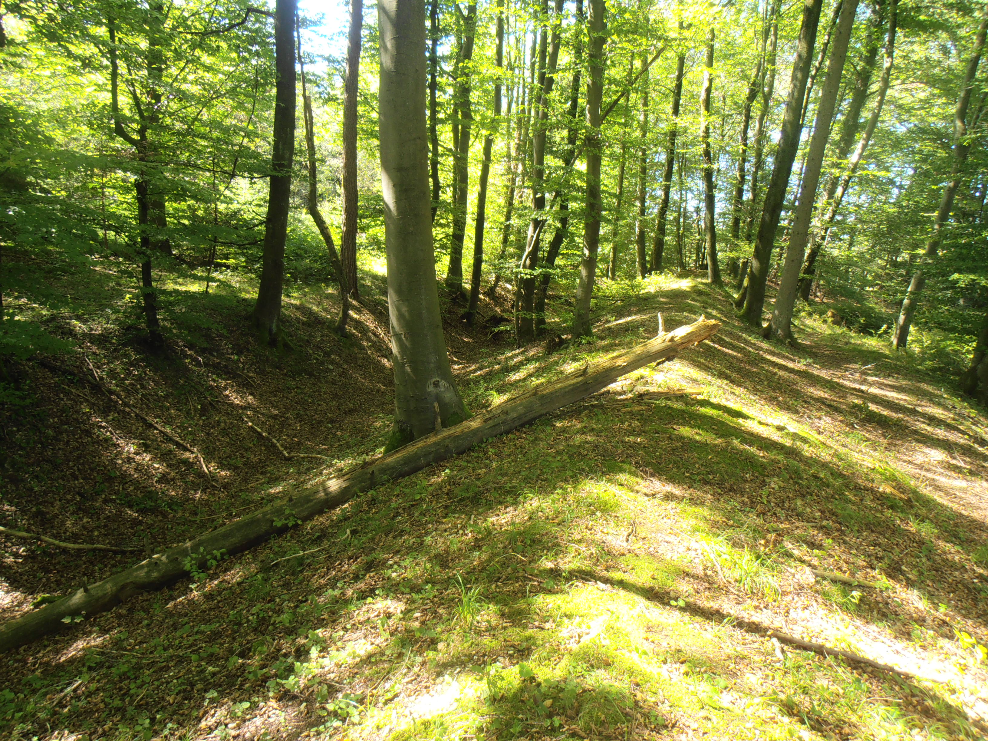 At Holzhausen 2, the forest has taken over. The ground inside the wall has filled in over time so that the earthwork is now more of a plateau. Here is the edge, from above on the wall.