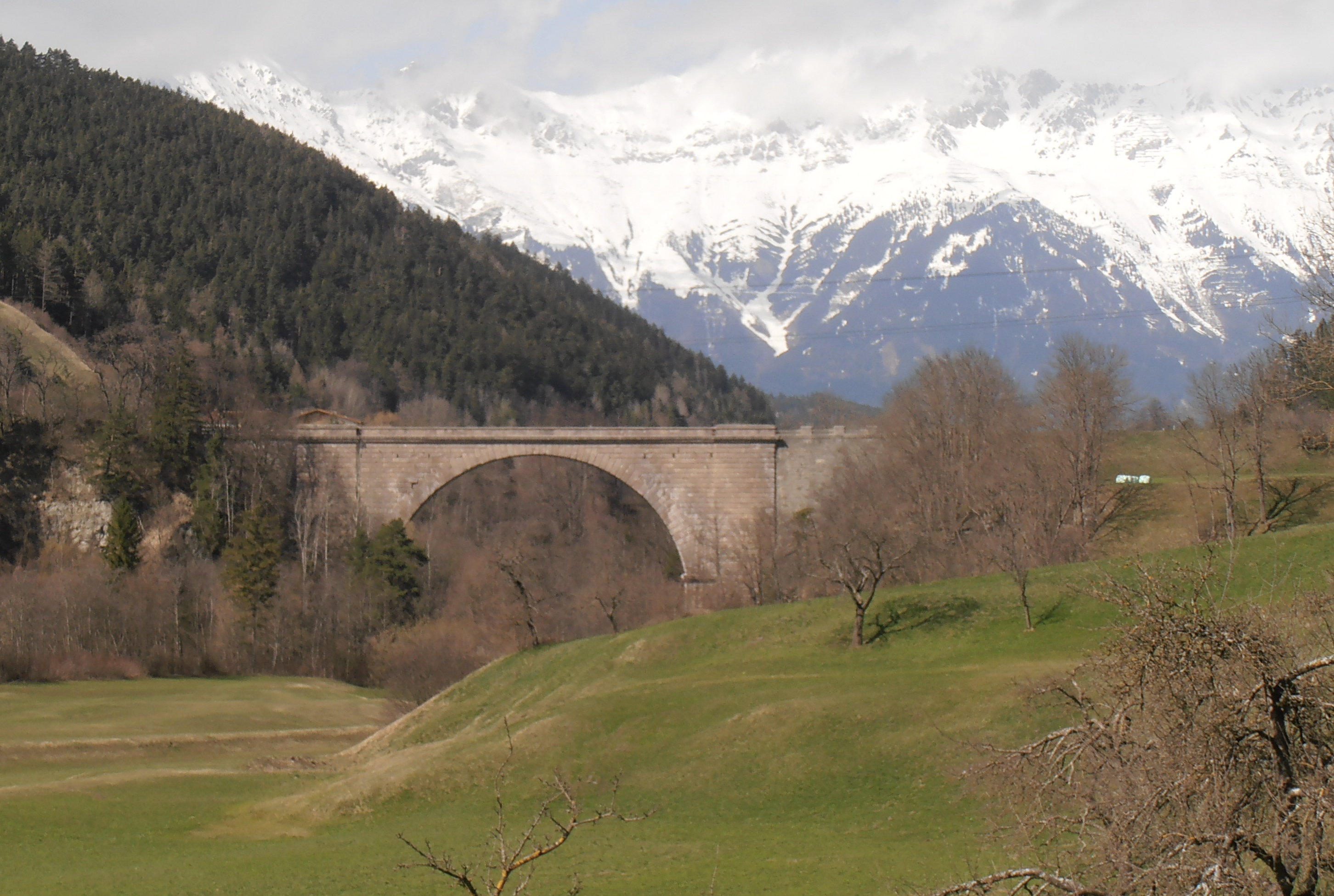 To see the Via Raetia road segment without a car: ST Bus from Innsbruck Train Station to Schönberg Ortsmitte. Follow “Römerstrasse” signs to the Autobahn underpass. It’s at the far end of the rest stop, which includes a McDonalds with the best views I have ever seen.