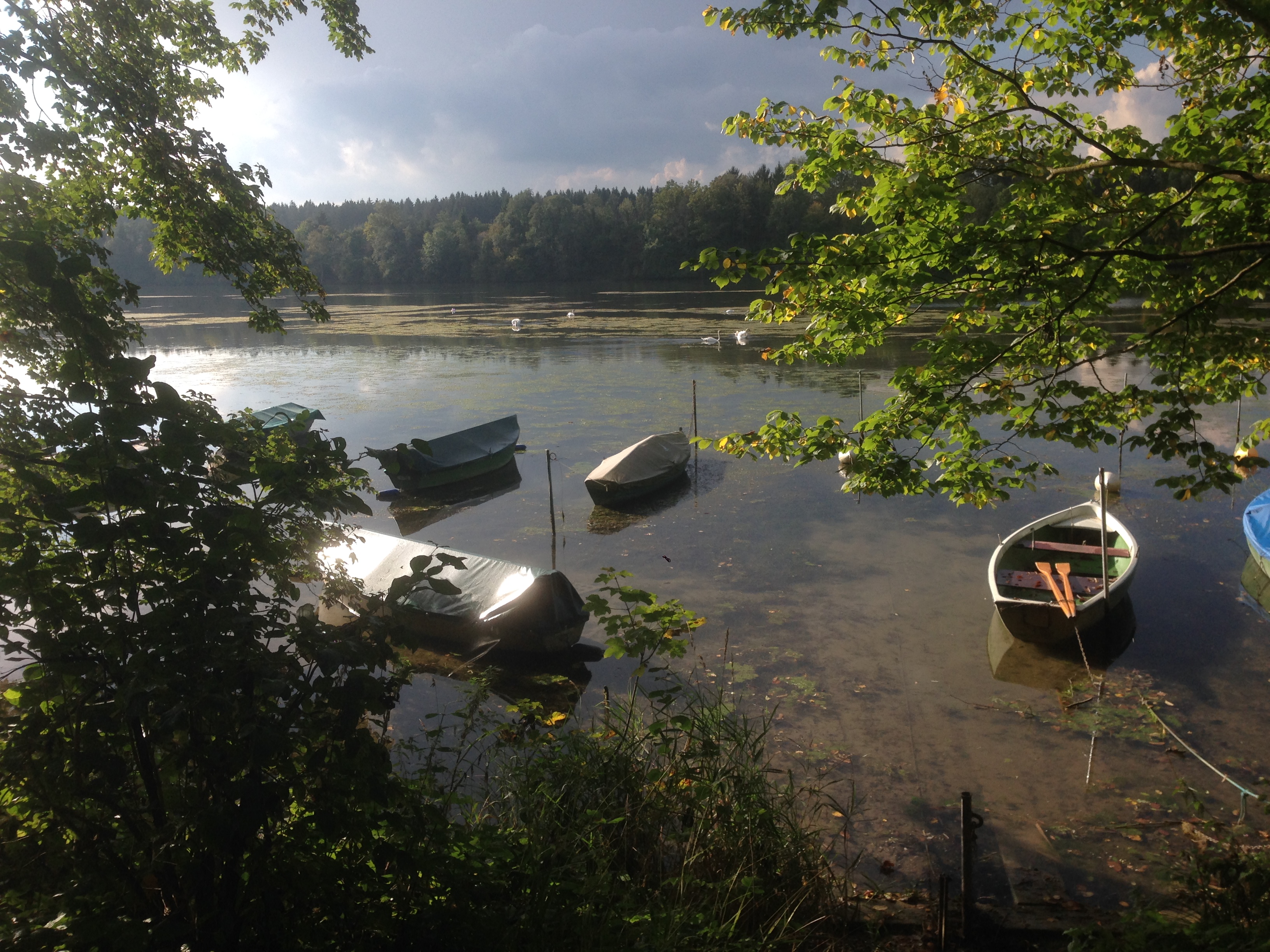 A beautiful late-summer Saturday afternoon walking along the Lech River, south of Landsberg. The river was full of swans, dozens of them, and as we walked an enormous flock of honking wild geese came in over the trees and landed in the water. The Lech gets its name from the Celts who lived here and who were known to the Romans as Licates. Over the years it’s been referred to as Licus, Licca, Lecha, and finally Lech. According the the German Wikipedia, the Welsh word llech (stone slab) and the Breton word lec’h (gravestone) point to a Celtic origin, as the river is unusually gravelly.