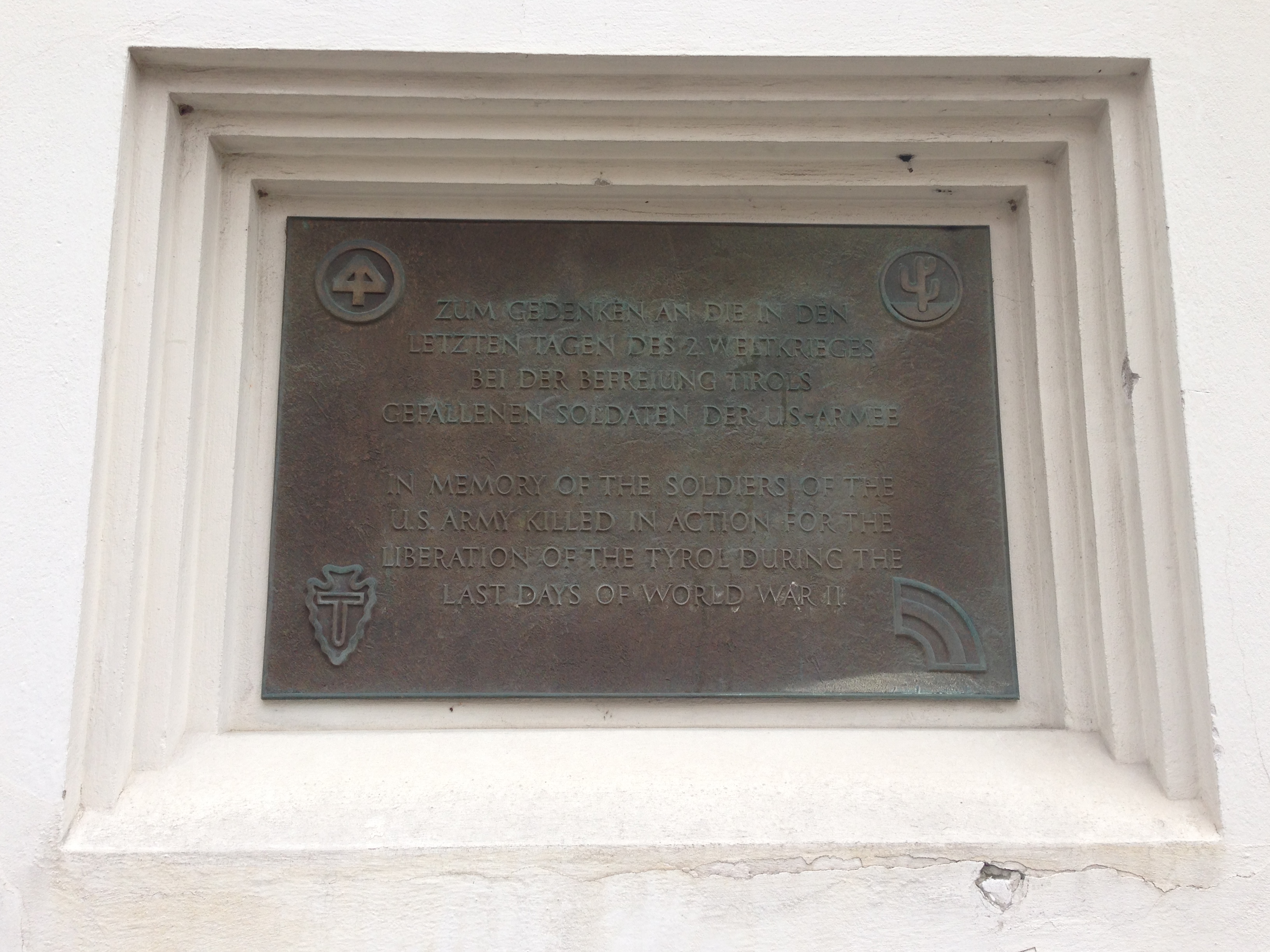 In memory of the soldiers of the U.S. Army killed in action for the liberation of the Tyrol during the last days of World War II.