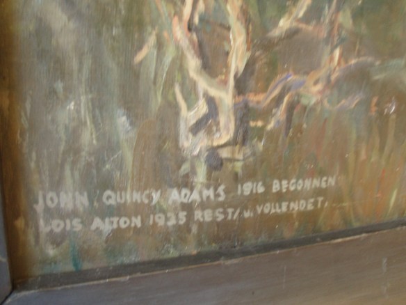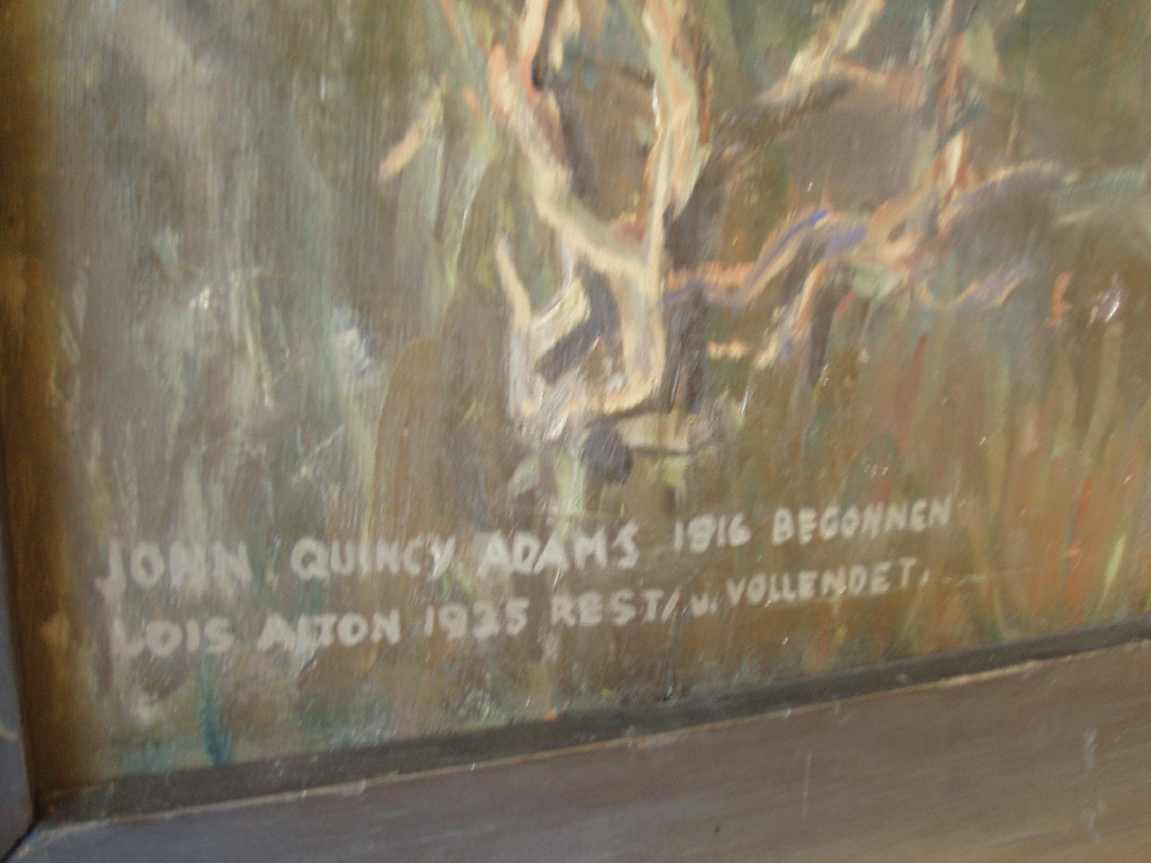 Say what? “John Quincy Adams, began in 1916. Lois Alton rest[ored?] and finished in 1935.”