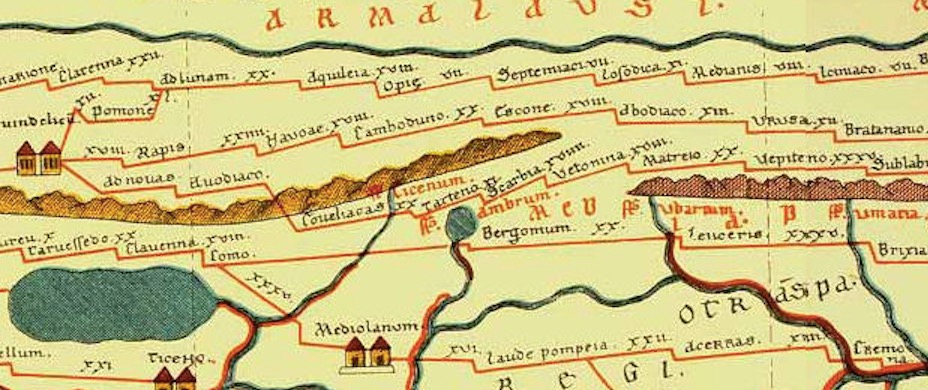 The Tabula Peutingeriana, in fact, has two Abodiacos: they are the same village. It stands at the crossroads of two Roman roads : the Via Claudia Augusta, where it’s just after the station ‘ad novas’ on the road out of Augusta Vindelicum/Augsburg, and the salt road that partly connected Lake Constance (Brigantium) to Salzburg (Iuvavum).